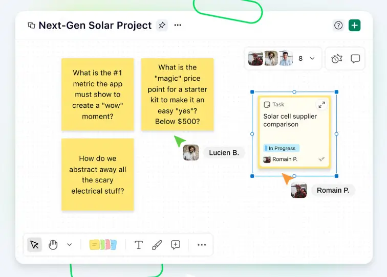 - Collaboration features: Comments, shared documents, and whiteboards help teams coordinate work and capture information in the same workspace.