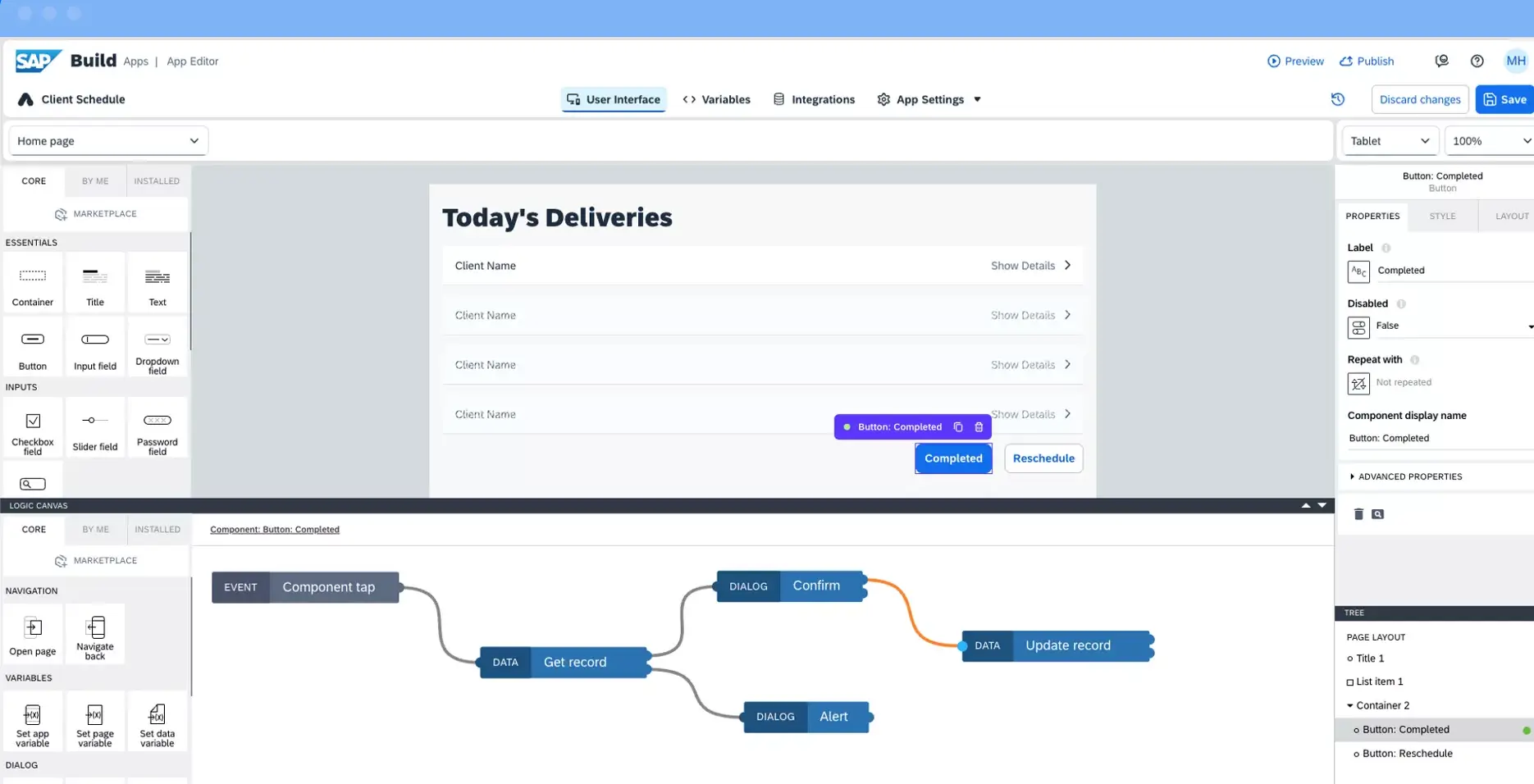 SAP Build Apps Enterprise-grade app development with deep logic • Cross-platform web + mobile builder
