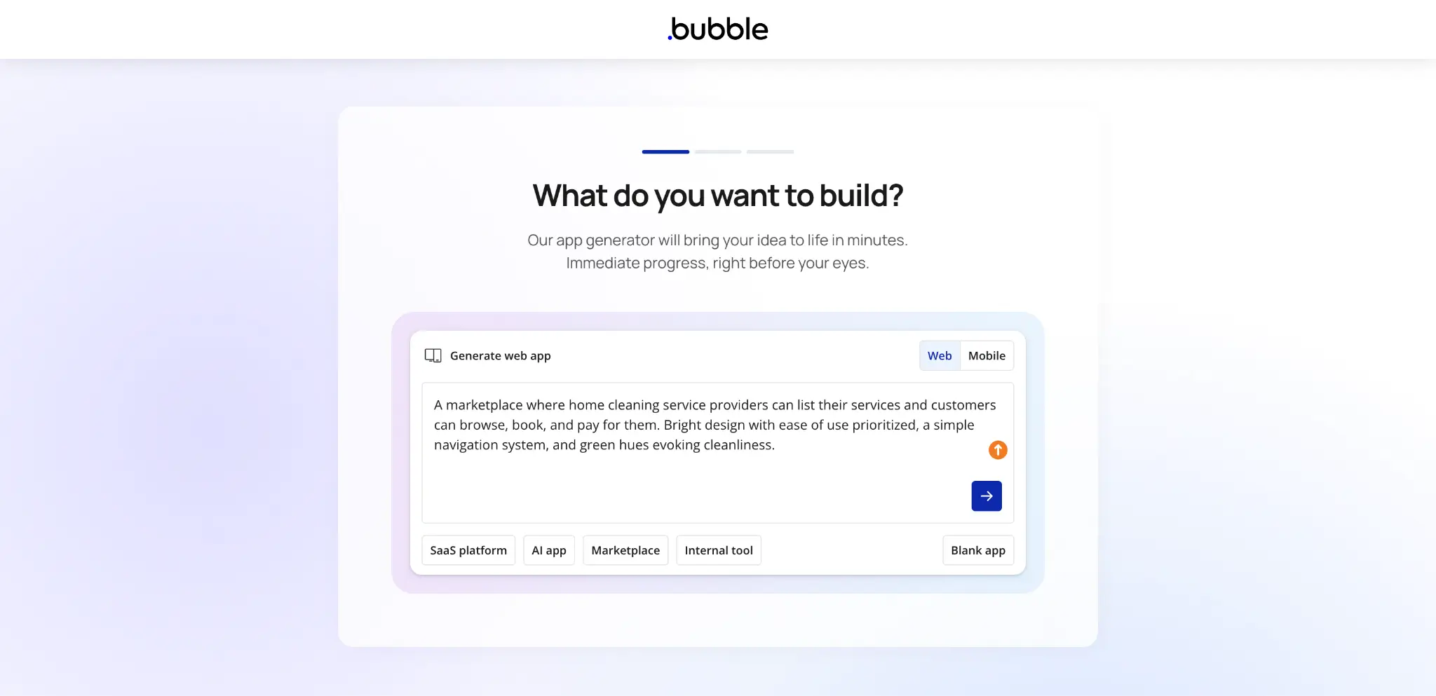 Bubble is a no-code platform for building web and mobile applications. You describe what you want to build, and Bubble’s AI generates a basic app with an interface and logic. From there, you can adjust and customize everything using the drag-and-drop editor.