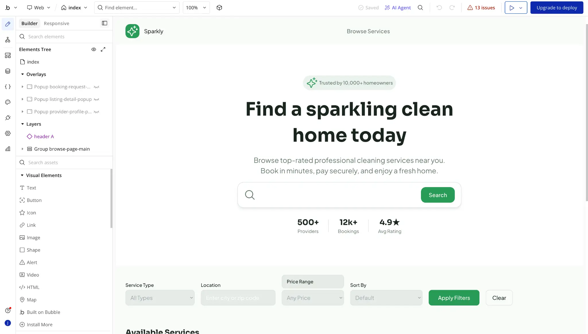 People use Bubble to build everything from marketplaces and SaaS MVPs to community platforms and internal tools. It also gives you more control over how your app looks than most platforms in this space. You get responsive design across devices, pixel-level control over layouts, and the ability to import designs directly from Figma.