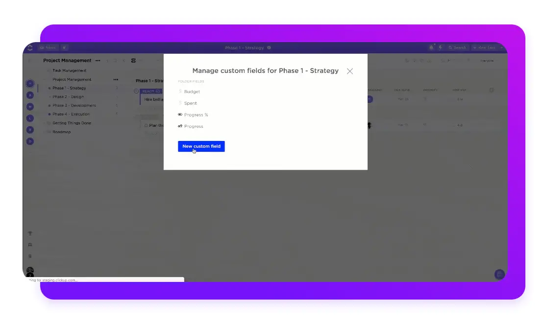 ClickUp is a flexible project management platform that also supports structured data storage through its custom fields and task hierarchies. While it’s not a traditional database, it offers enough relational structure for small teams to track client info, tasks, goals, and workflows—all in one place.