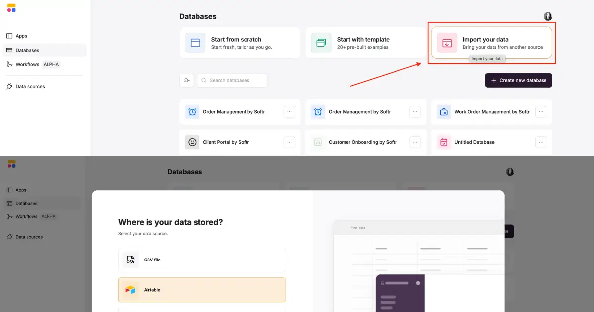 - Airtable import: Easily migrate data from Airtable into Softr Databases in a few clicks—relational fields included!