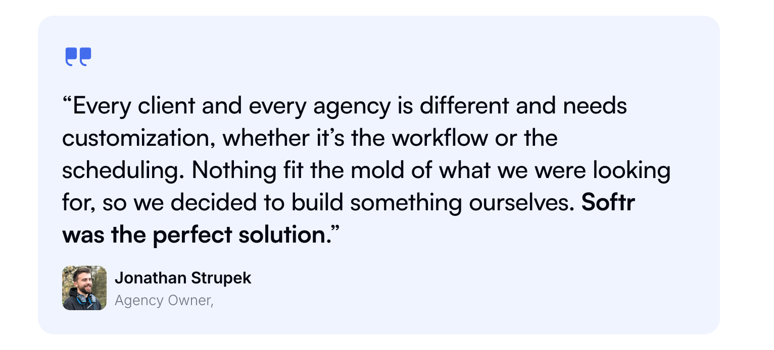Example use case: Strupek — a content marketing agency, created a portal so clients can preview social media drafts (with live previews), leave feedback, and track campaign calendars. They knocked out 10 hours of work weekly and cut costs by 58%.