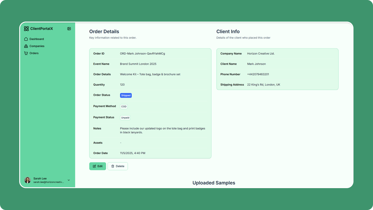This client portal was built to help businesses streamline how they collaborate with their clients - from managing projects and sharing files to tracking approvals and communication in one place. Before using a system like this, most teams relied on scattered tools and long email threads that slowed down response times and created confusion. With this portal, everything becomes transparent and organized. Clients can log in, view progress, upload brand assets, send messages, and request new orders - while admins manage all data and workflows from a single dashboard. The result is faster approvals, clearer visibility for clients, and measurable time savings for teams.