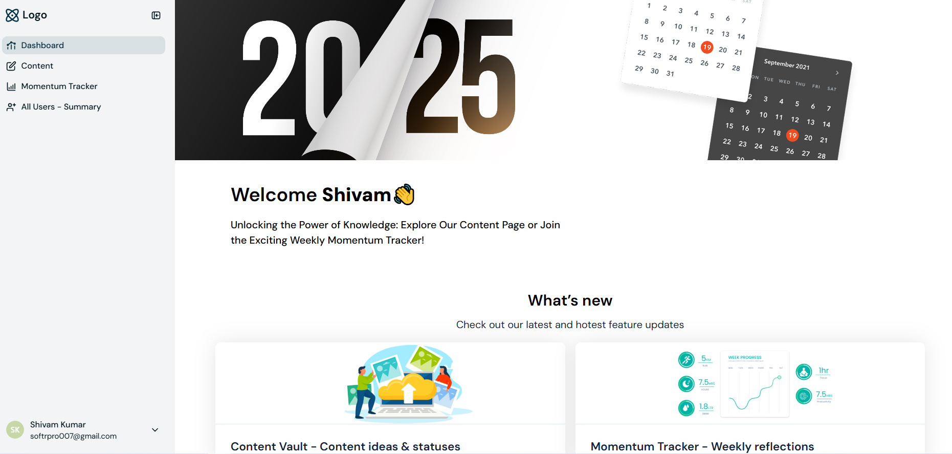The portal was designed with light styling, vertical layouts, and admin-friendly summary tables. Each module in the system—Content Vault, Momentum Tracker, and Dashboard—operates independently but connects through a unified Softr interface. The project emphasized modular scalability, clear data architecture, and intuitive usability, setting a strong base for subsequent modules.