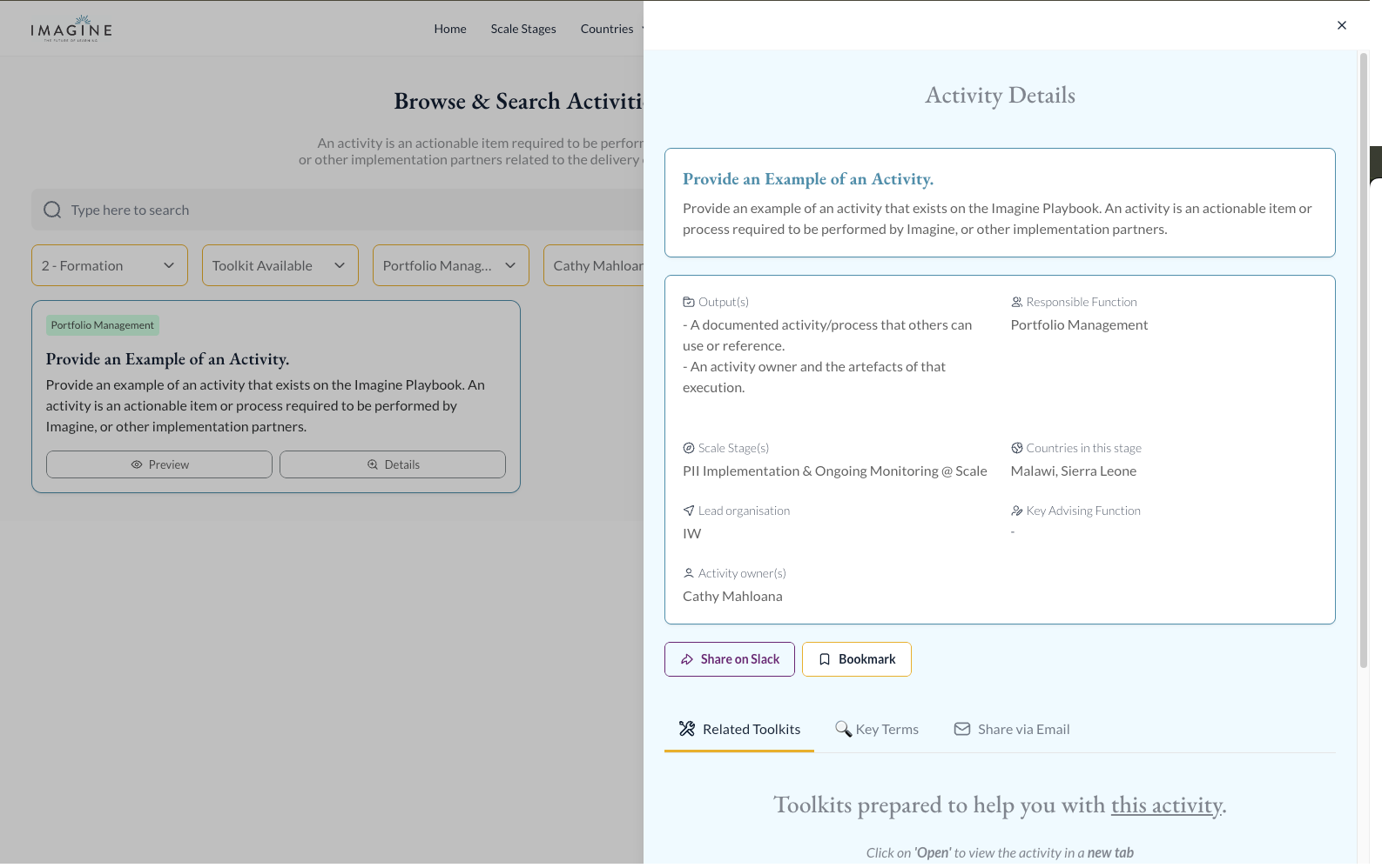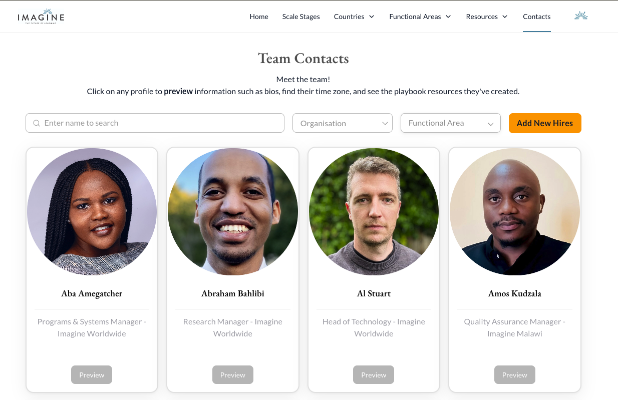 Imagine Worldwide’s goal is to solve the literacy and numeracy crisis for millions of primary school children across Sub-Saharan Africa. The Playbook is an internal knowledge base for 'how-to' implement tablet learning programs at scale. Imagine has designed different phases and stages of their program's scale journey. Each stage includes details of the key activities and processes to be performed. The playbook also contains templates and samples of deliverables, a glossary of key terms and quick links to collaboration platforms.