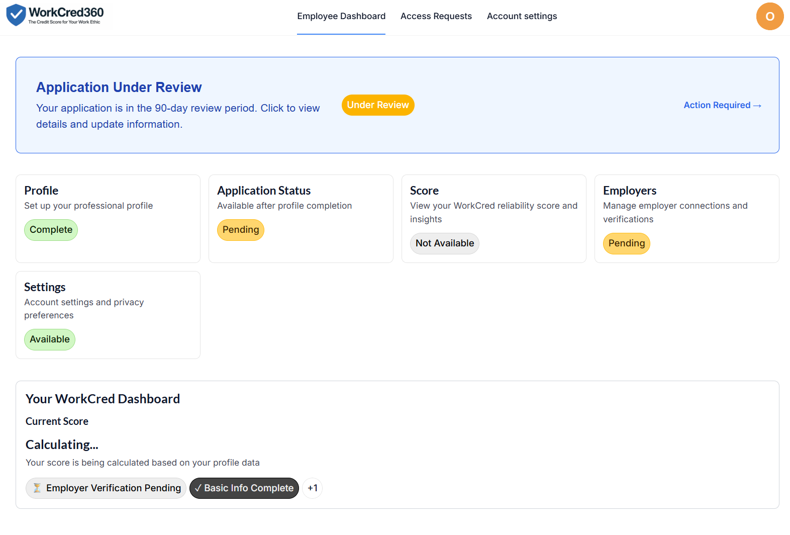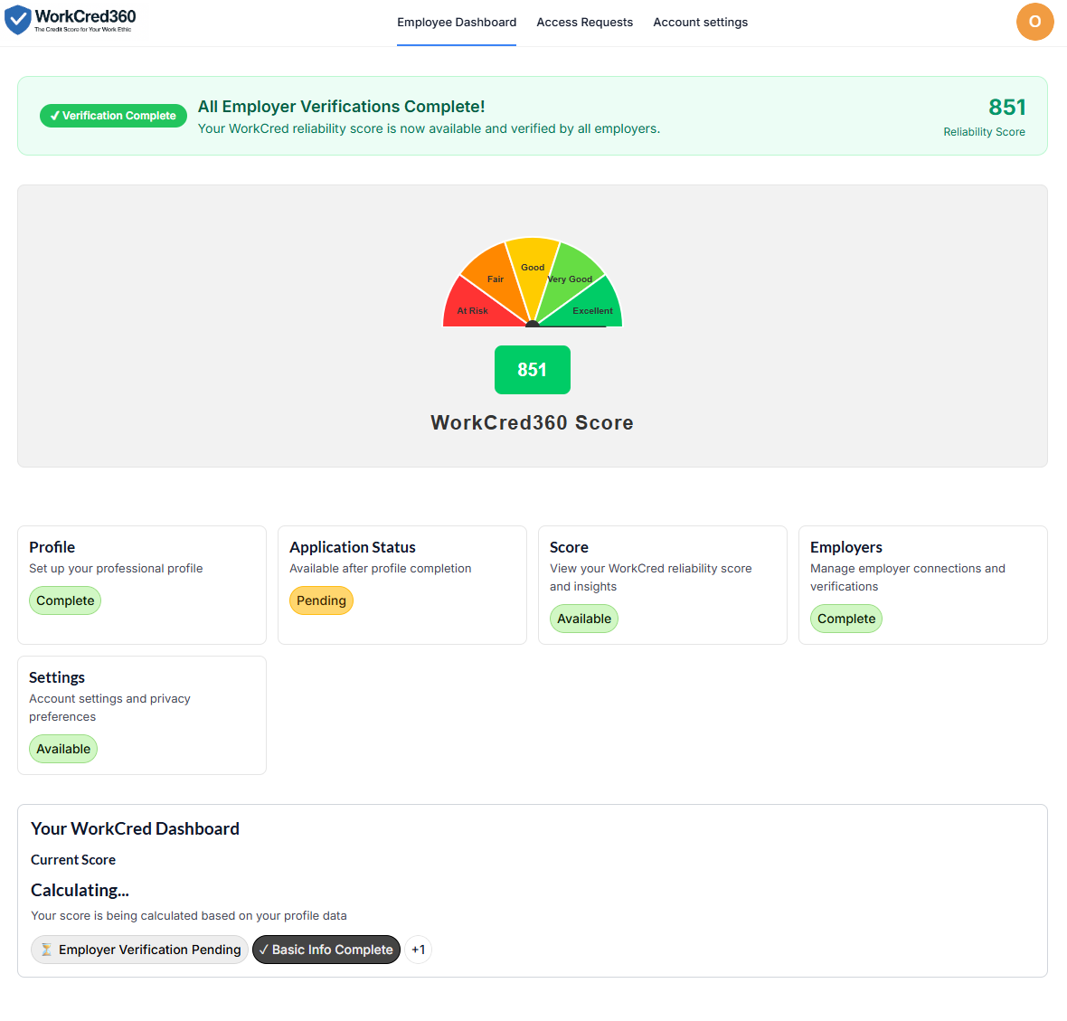 Score Generation – Verified data is compiled into a standardized WorkCred360 score.