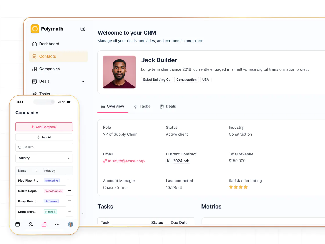 Drag and drop customizable building blocks with various views and functionalities. Granular permissions allow you to control what data each user can access, and which actions they can take.