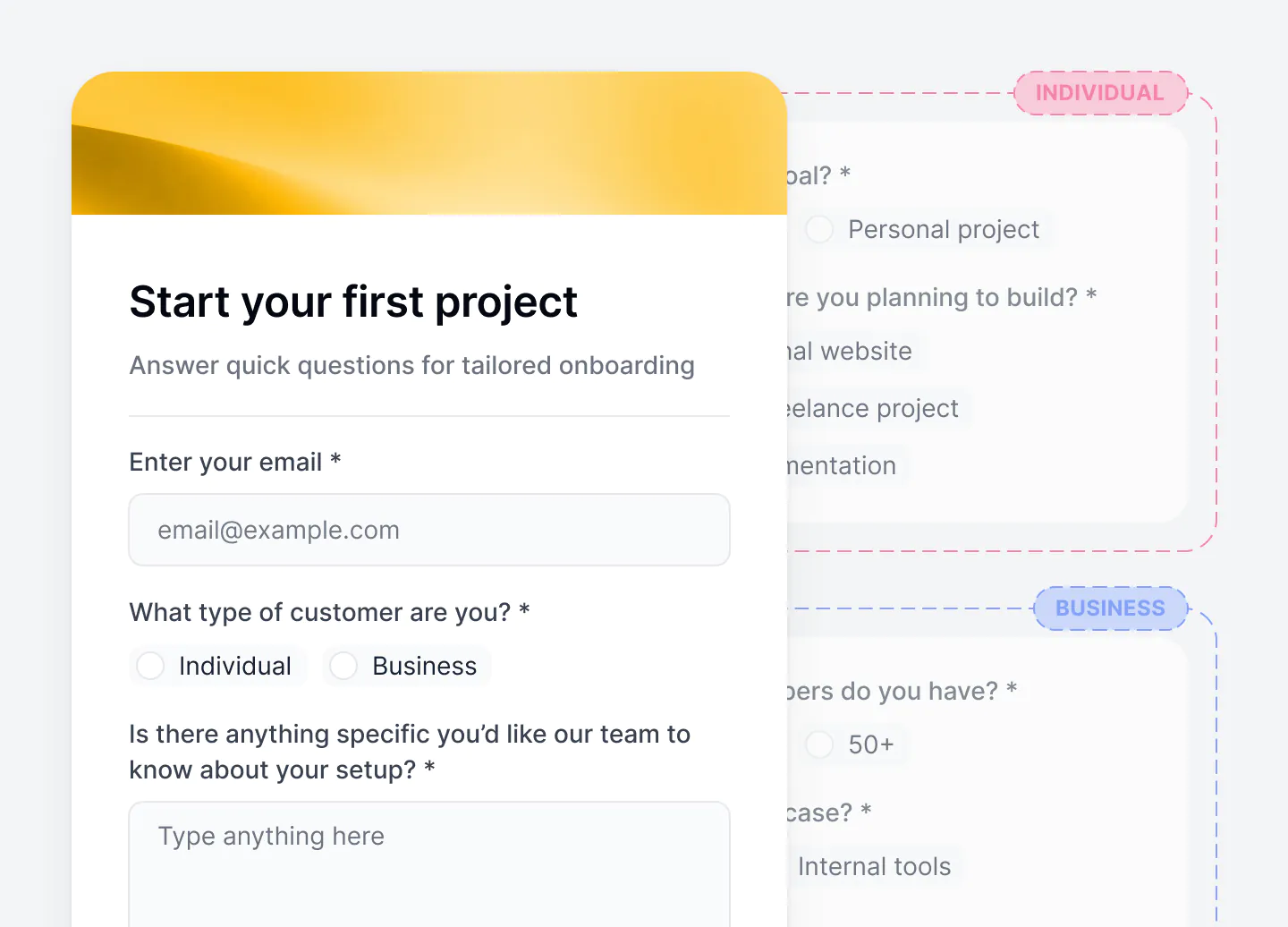 Collect customer information and feedback during onboarding with Softr’s easy-to-use conditional form builder.