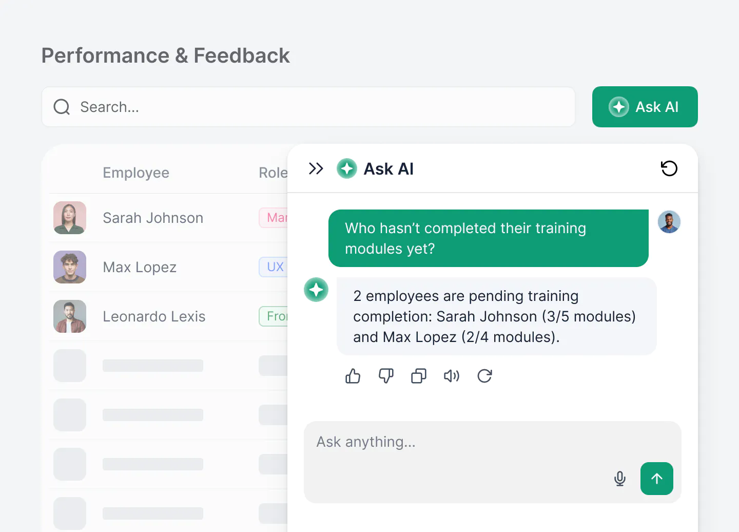 - “Summarize feedback trends from last quarter’s performance reviews.”