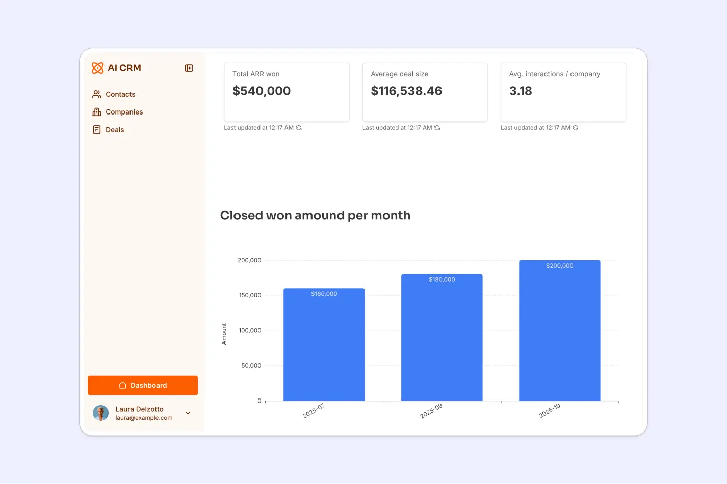This free template empowers you to build a fully functional, AI-powered B2B SaaS CRM application from scratch. Designed for modern software sales teams, it combines a robust database, a responsive interface, and automated workflows into one cohesive platform.