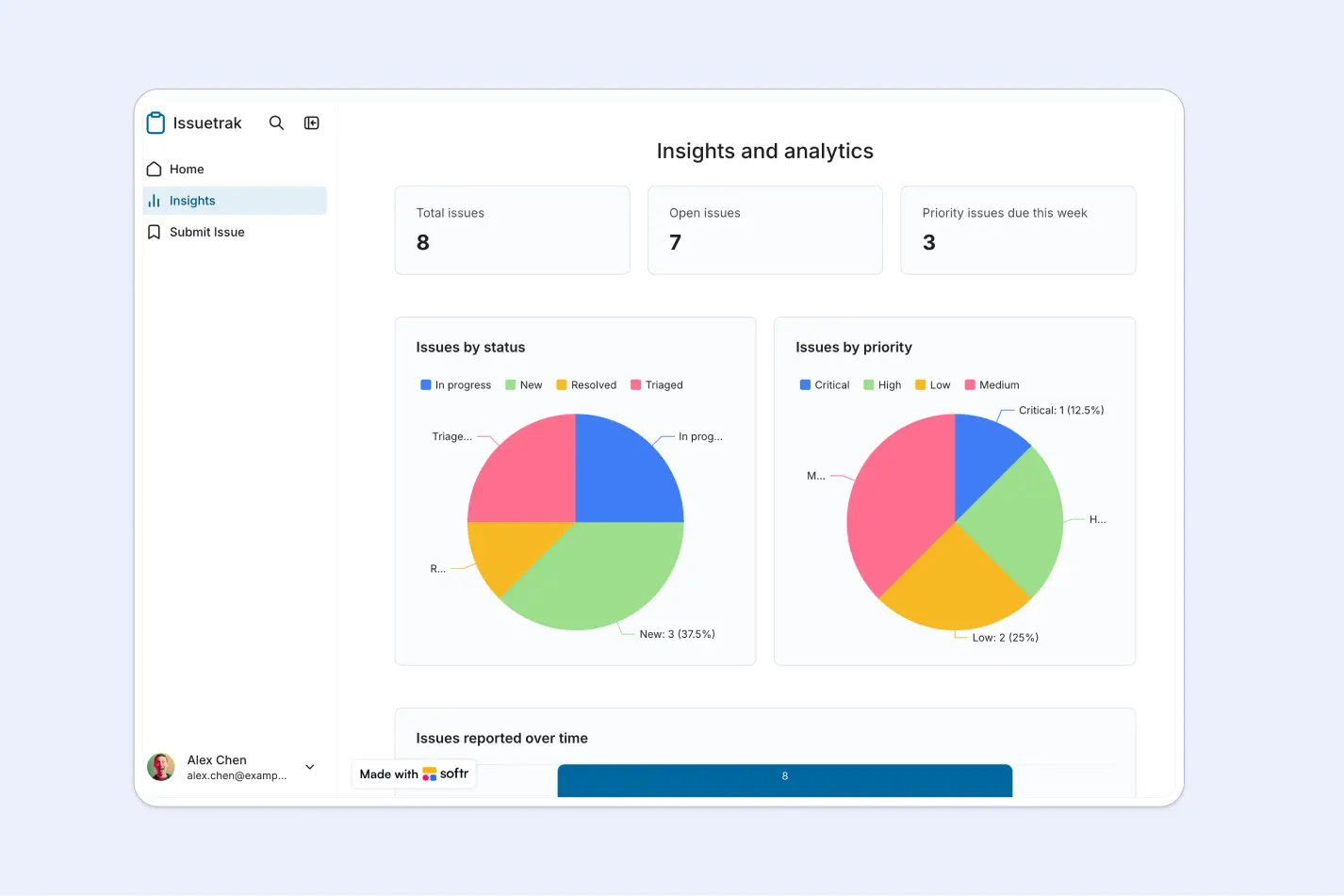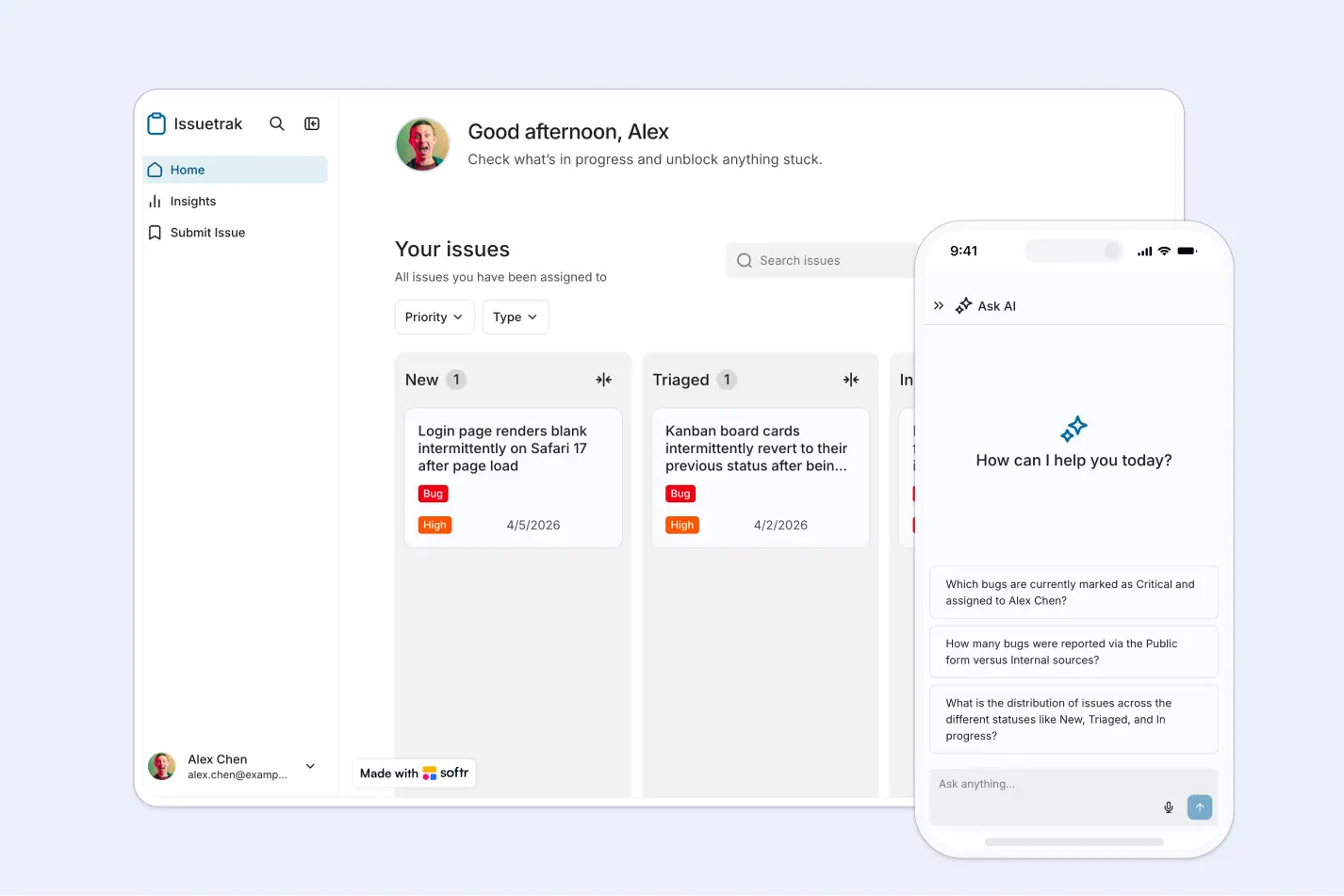 Yes. Softr is a no-code platform that lets you build custom issue tracking apps fast using templates, drag-and-drop blocks, workflows, permissions, and your existing data—without writing code.